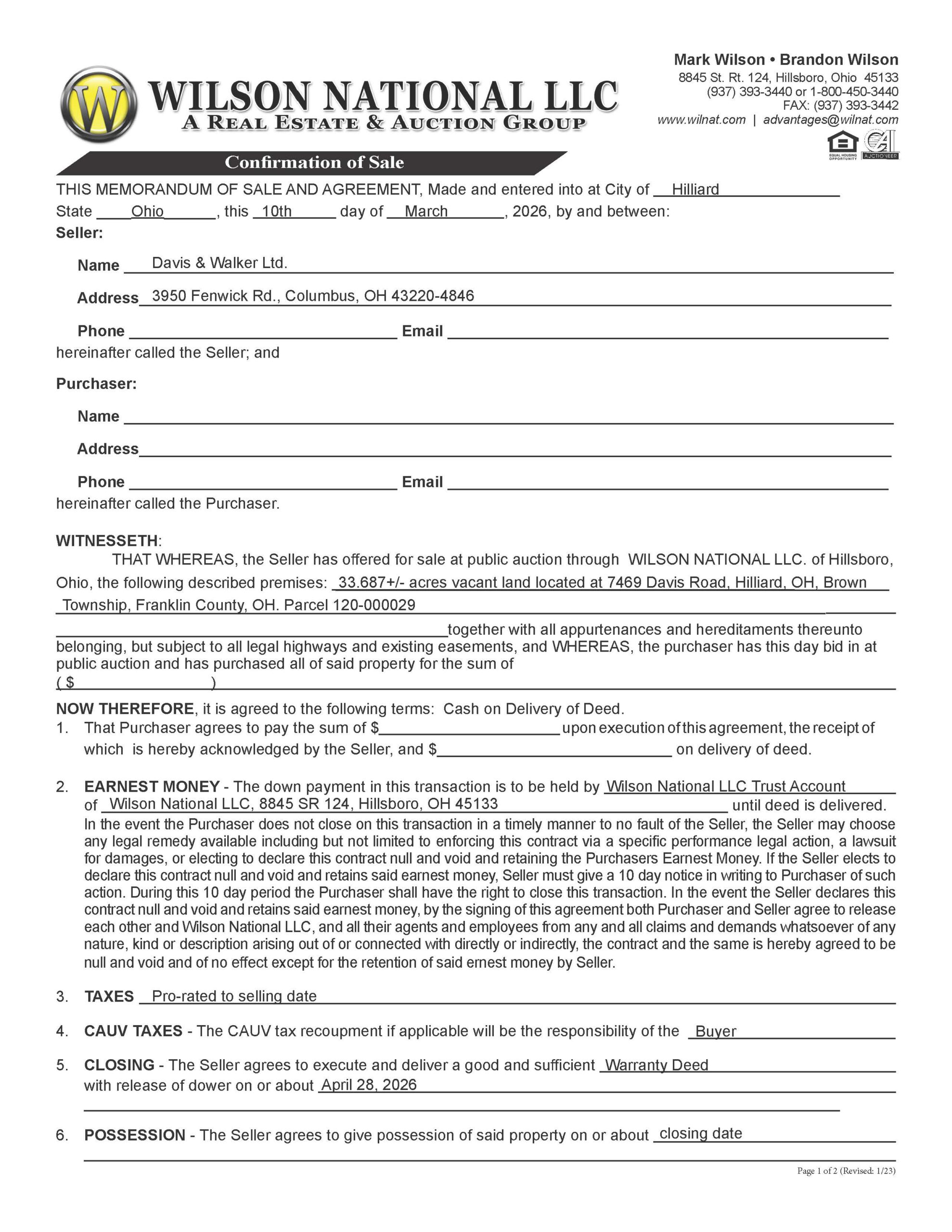 PROPERTY LOCATED AT 7469 DAVIS ROAD, HILLIARD, OH