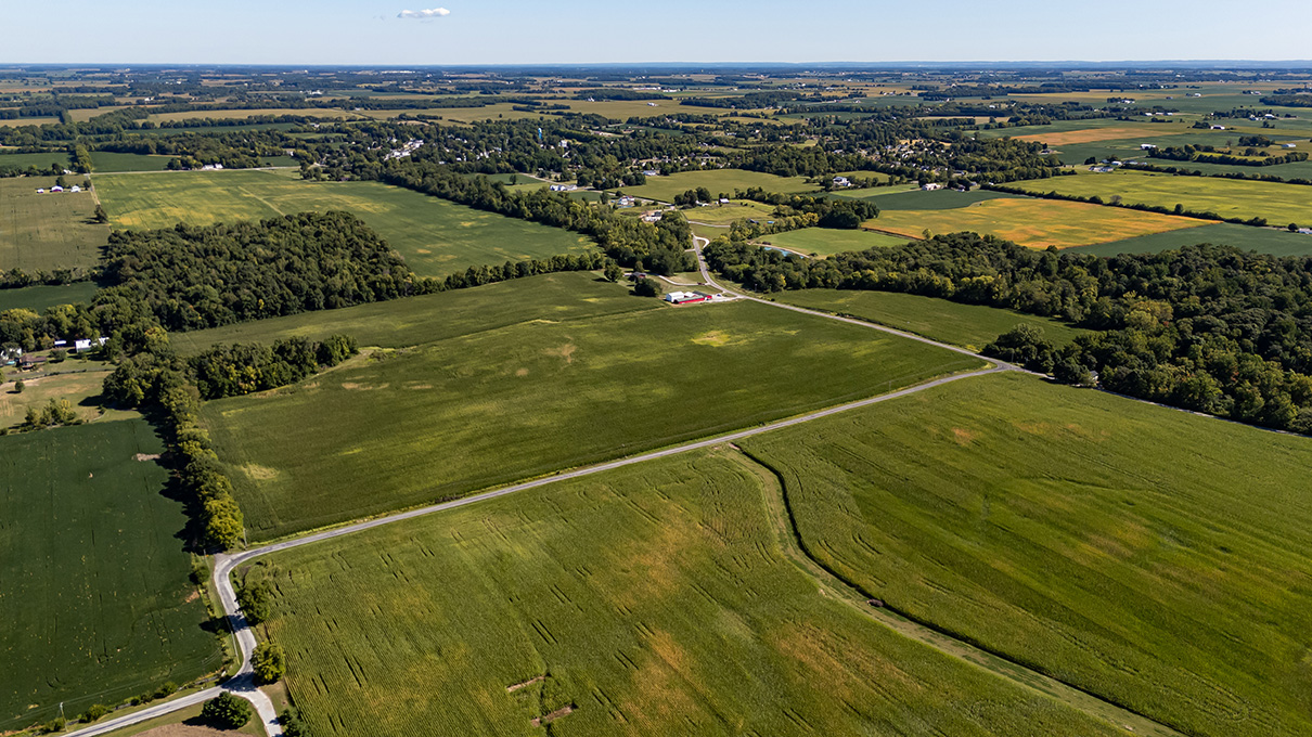 54.48 acres with 50.65+/- acres tillable. 905.09’ road frontage on N. Addison New Carlisle Road and 1189.62’ frontage on Drake Road. 34% Kokomo; 11% Brookston; Miamian, Crosby & Miami soils as well.